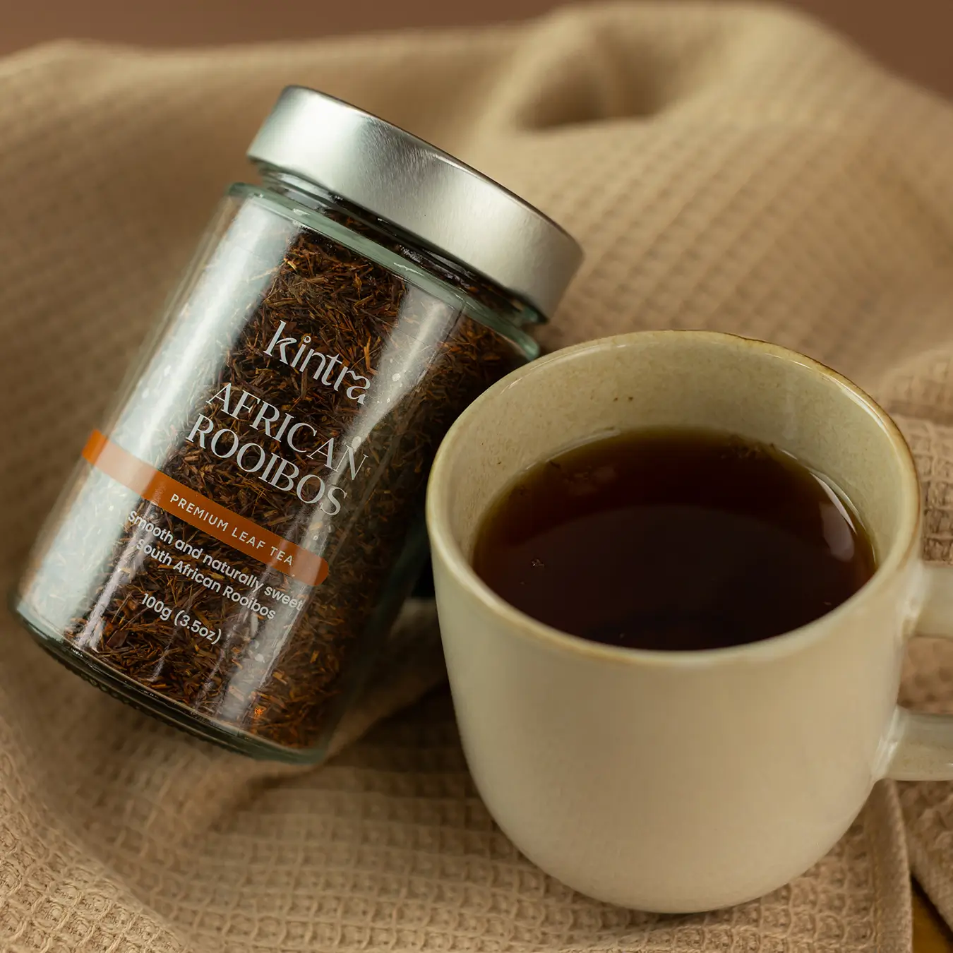 Grown in the red-soiled regions of South Africa, this naturally caffeine-free infusion offers soft depth and a mellow, honeyed finish. Rich in antioxidants, it’s a soothing daily ritual to support overall wellbeing and bring calm comfort to your day.