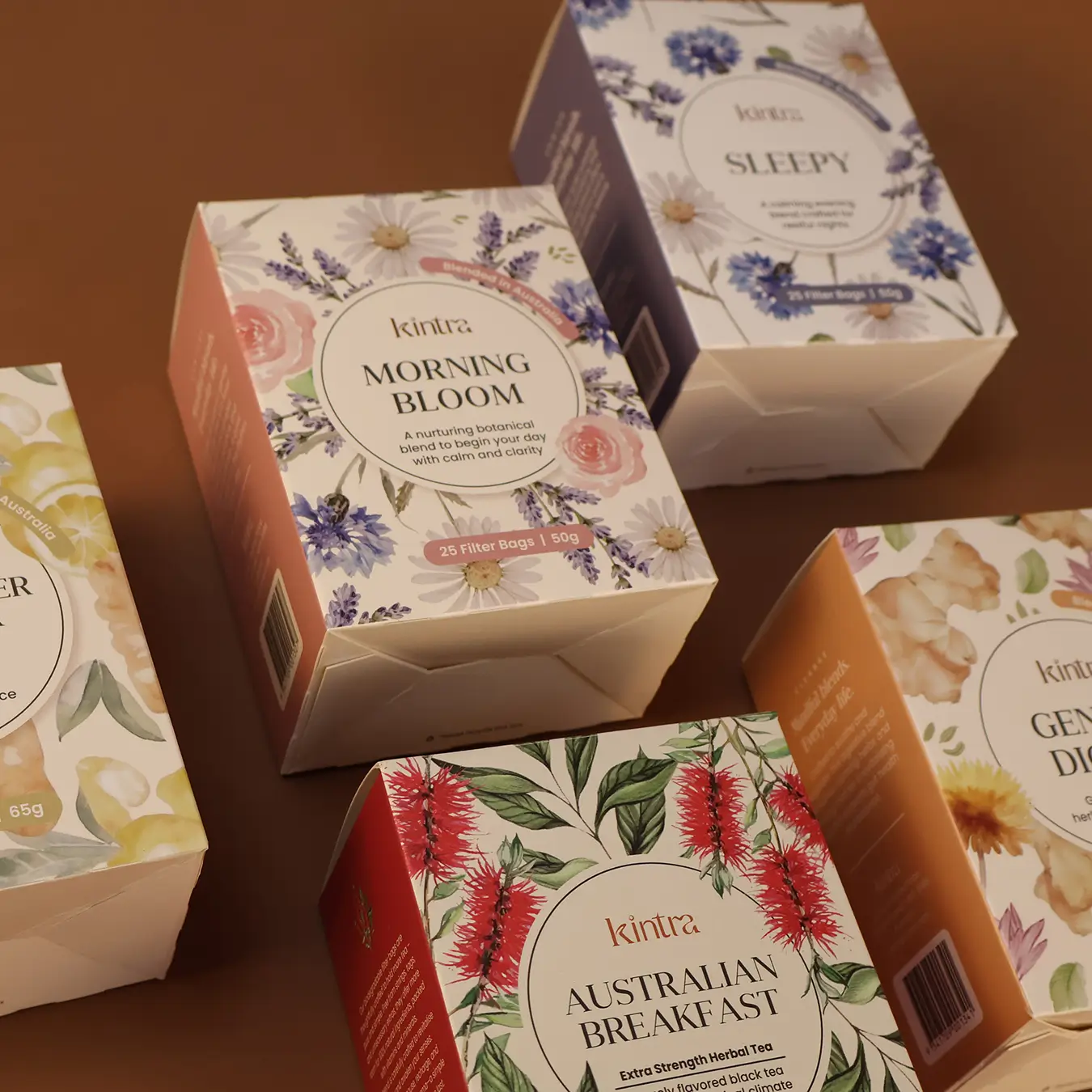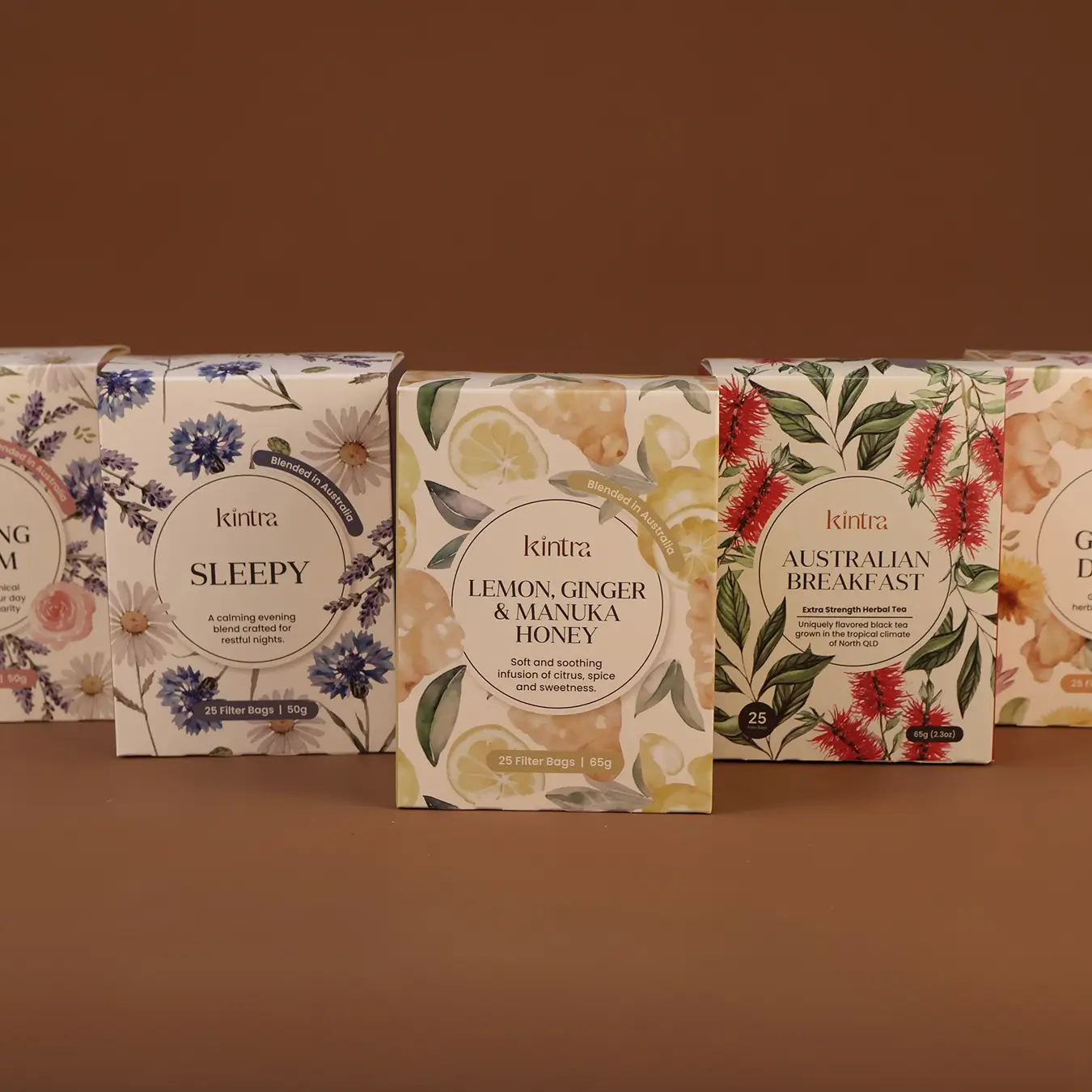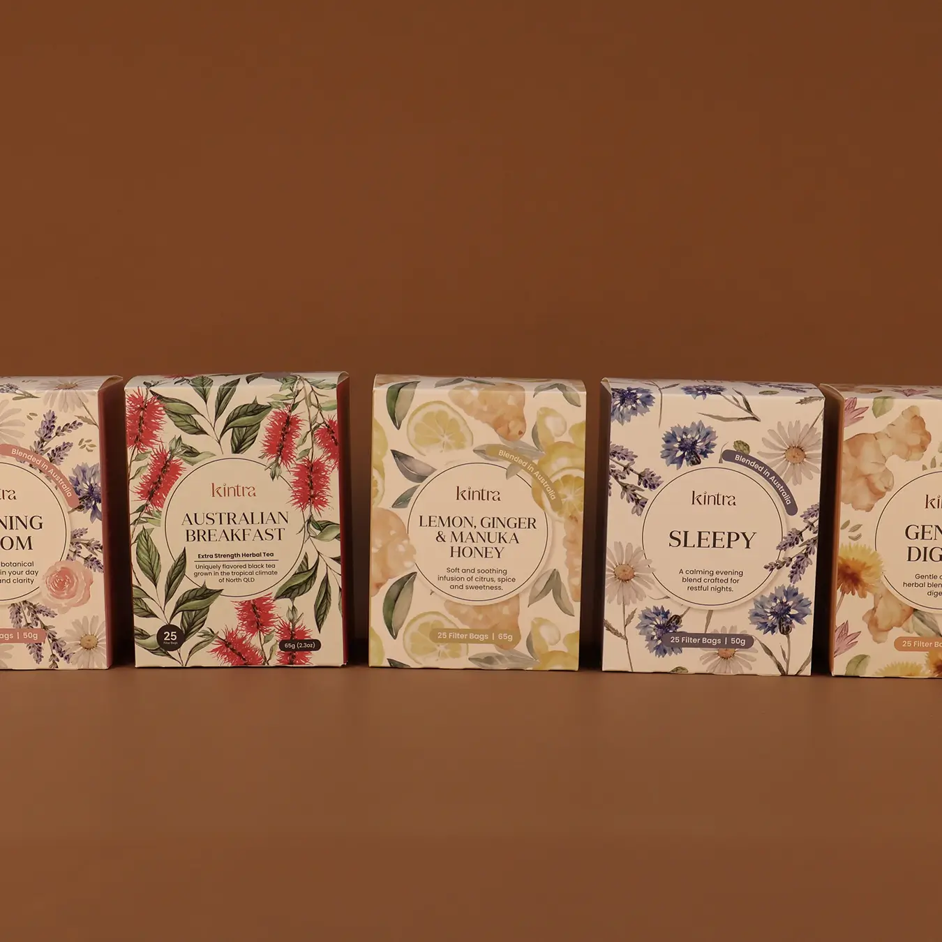 A versatile collection designed to support your daily rhythm, the Kintra Essentials set features five carefully selected filter bag blends, each aligned with a unique wellness intention. From morning clarity to evening calm, it’s your day, steeped with purpose.